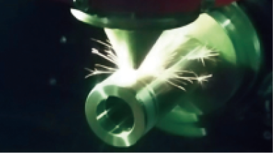 従来型の DED で問題となっていた熱ひずみや原料となる金属粉の飛散を抑え、高精度の加工を実現しました。