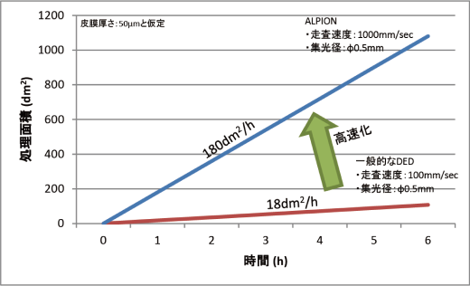 1 秒間 1,000mm超の走査速度を実現(集光径 0.5mm)。