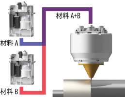 複数の原料粉末の混合比率を変化させながら積層造形できます。