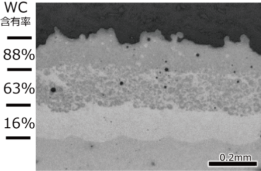 例えば基材に近い部分は高靭性の材料を使用。徐々に混合比率を変化させ、表面には高硬度の被膜を形成する「傾斜組成積層造形」も可能です。